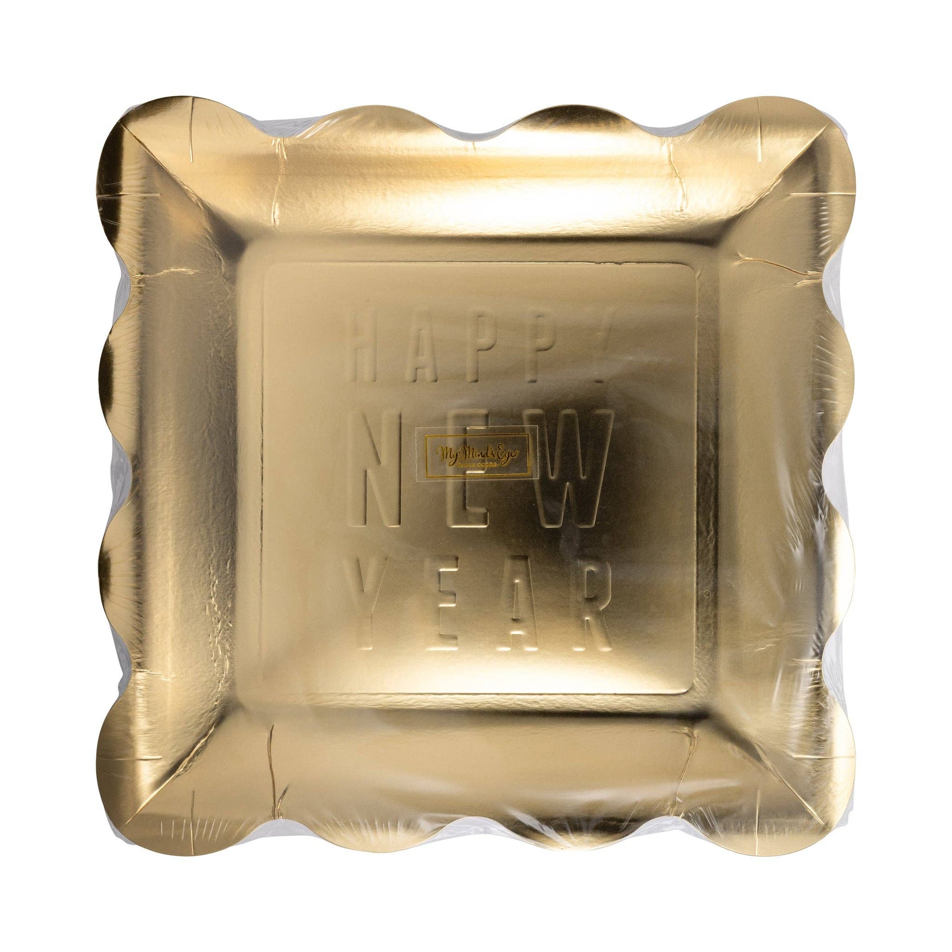 Celebrate in style with our Happy New Year Embossed Plate. Perfect for ringing in the new year, these plates feature an elegant embossed design that adds a festive touch to your party. • includes 8 shaped paper plates • 9 x 9 inches
