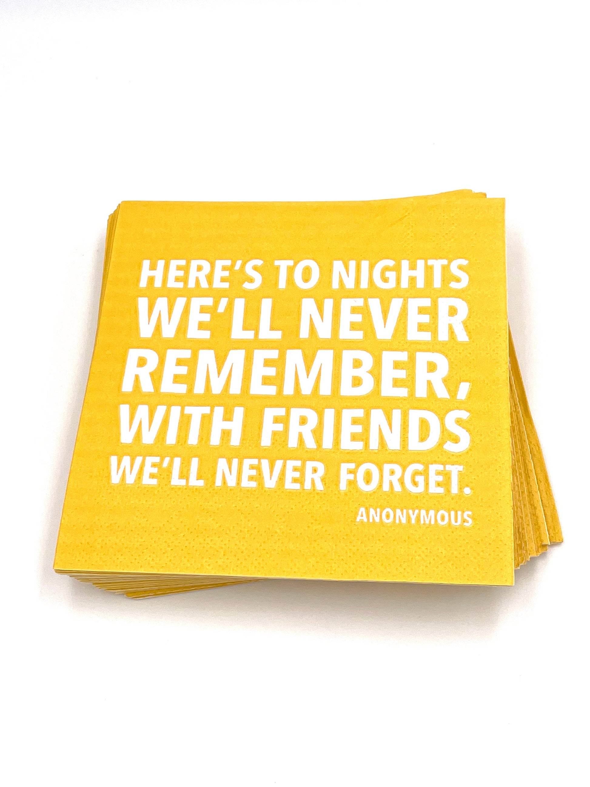 Here's To Nights We'll Never Remember With Friends We'll Never Forget 20 ct 3 ply