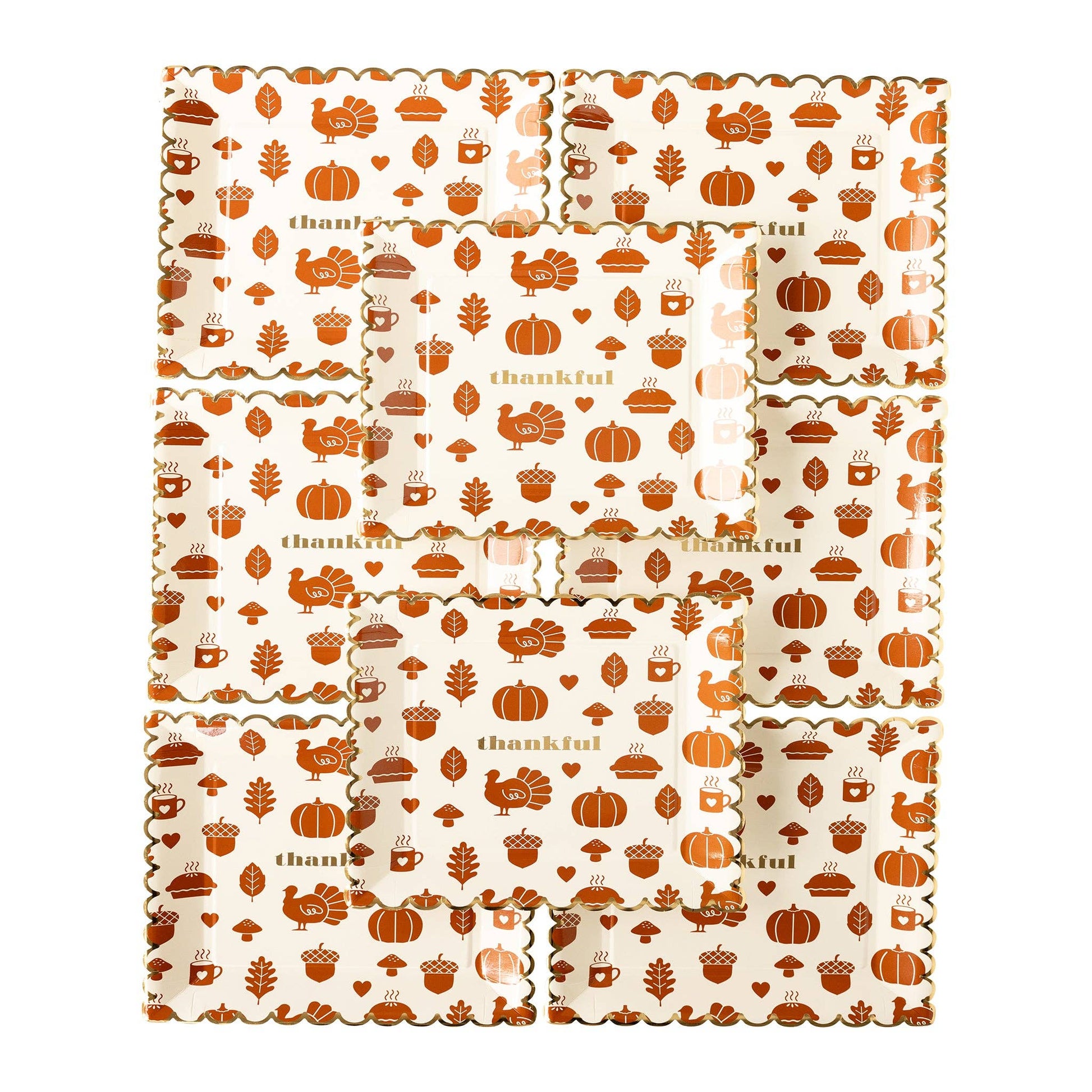 Get into the Thanksgiving spirit with the Thankful Icons Plate. This harvest tabletop plate features fun and festive Thanksgiving icons, adding a playful touch to your holiday table. Give thanks in style! • includes 8 paper plates • 10" • gold foil